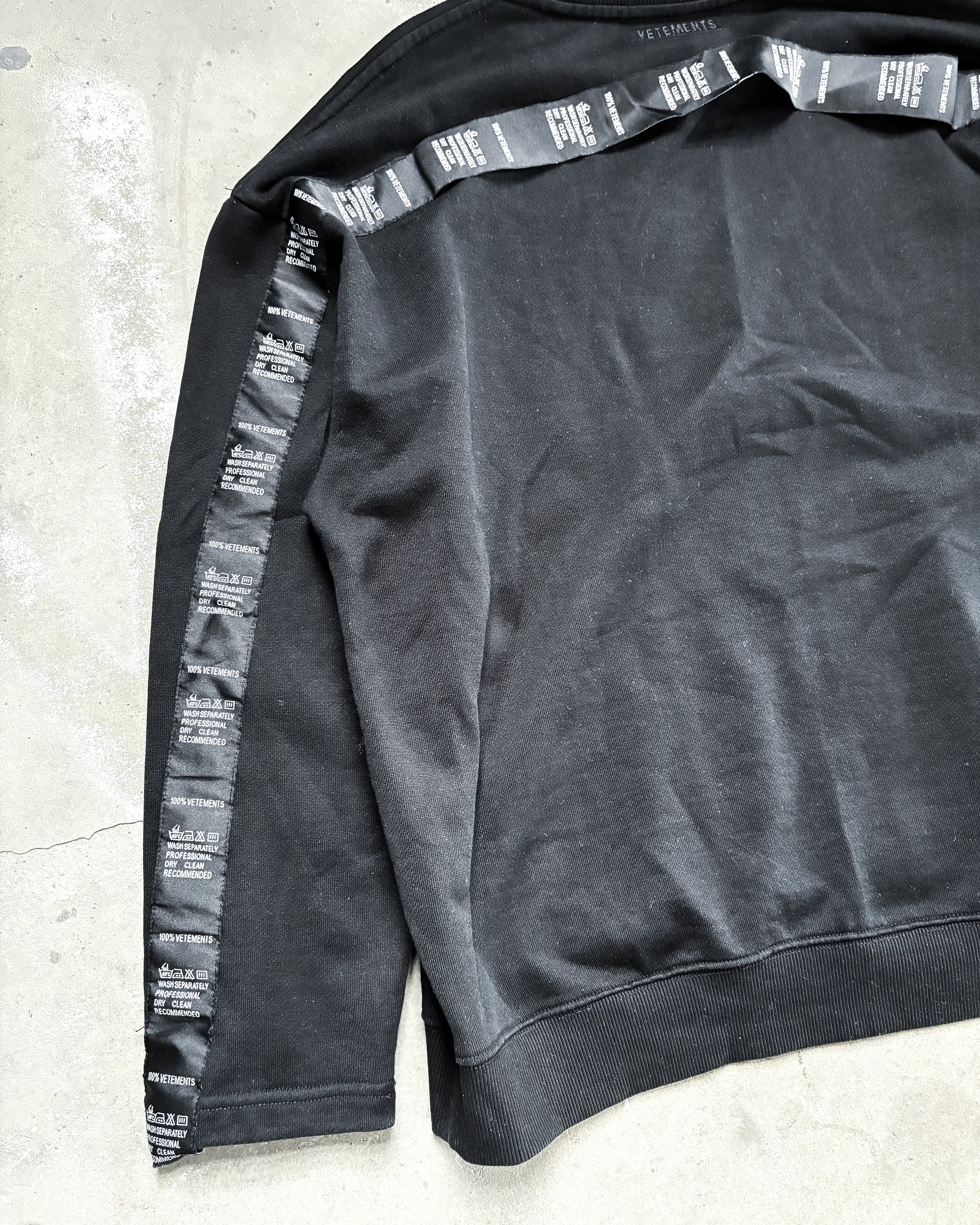 For sale is a Vetements Autumn Winter 2018 sweater by Demna Gvasalia featuring a wash label tape around the back.