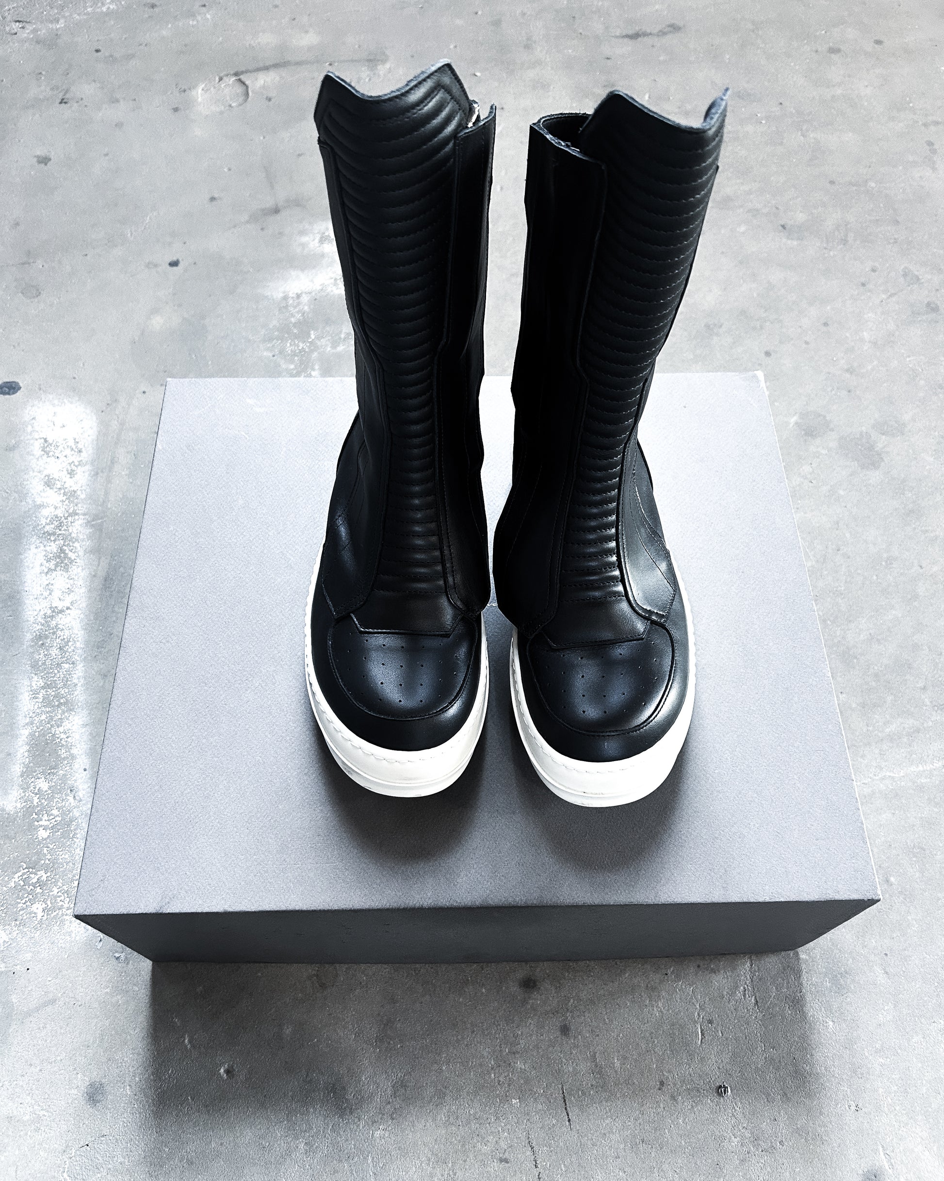 For sale is a crazy pair of Rick Owens Moto boots released exclusively in the Fall Winter 2023 ‘Luxor’ collection. Featuring an upper inspired by motorcycle boots made from calf leather with a rubber shark tooth sole.