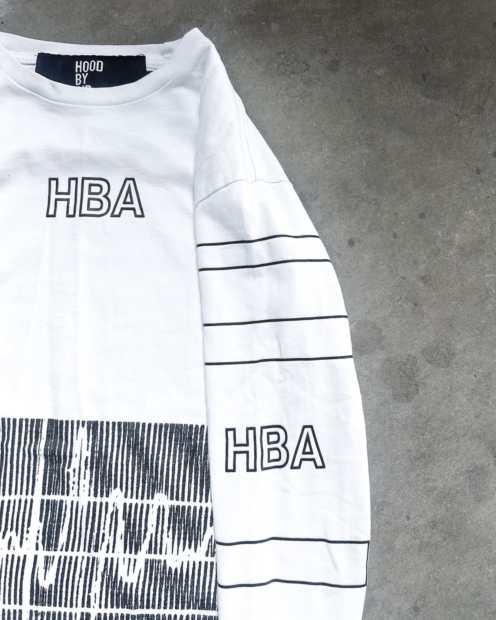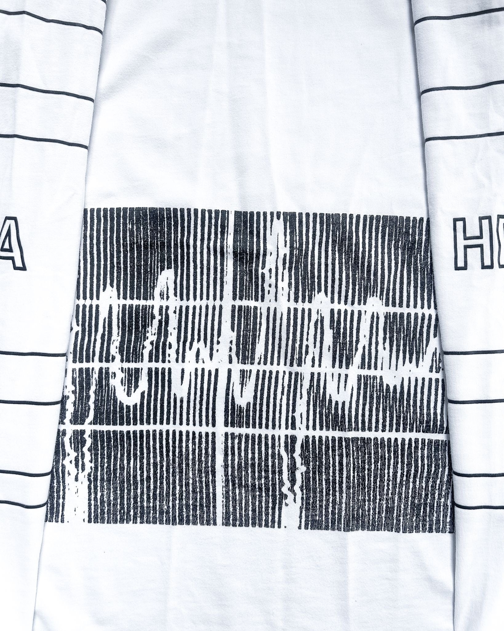 Hood by Air longsleeve features chest logo, heart monitor below and logo on both arms.