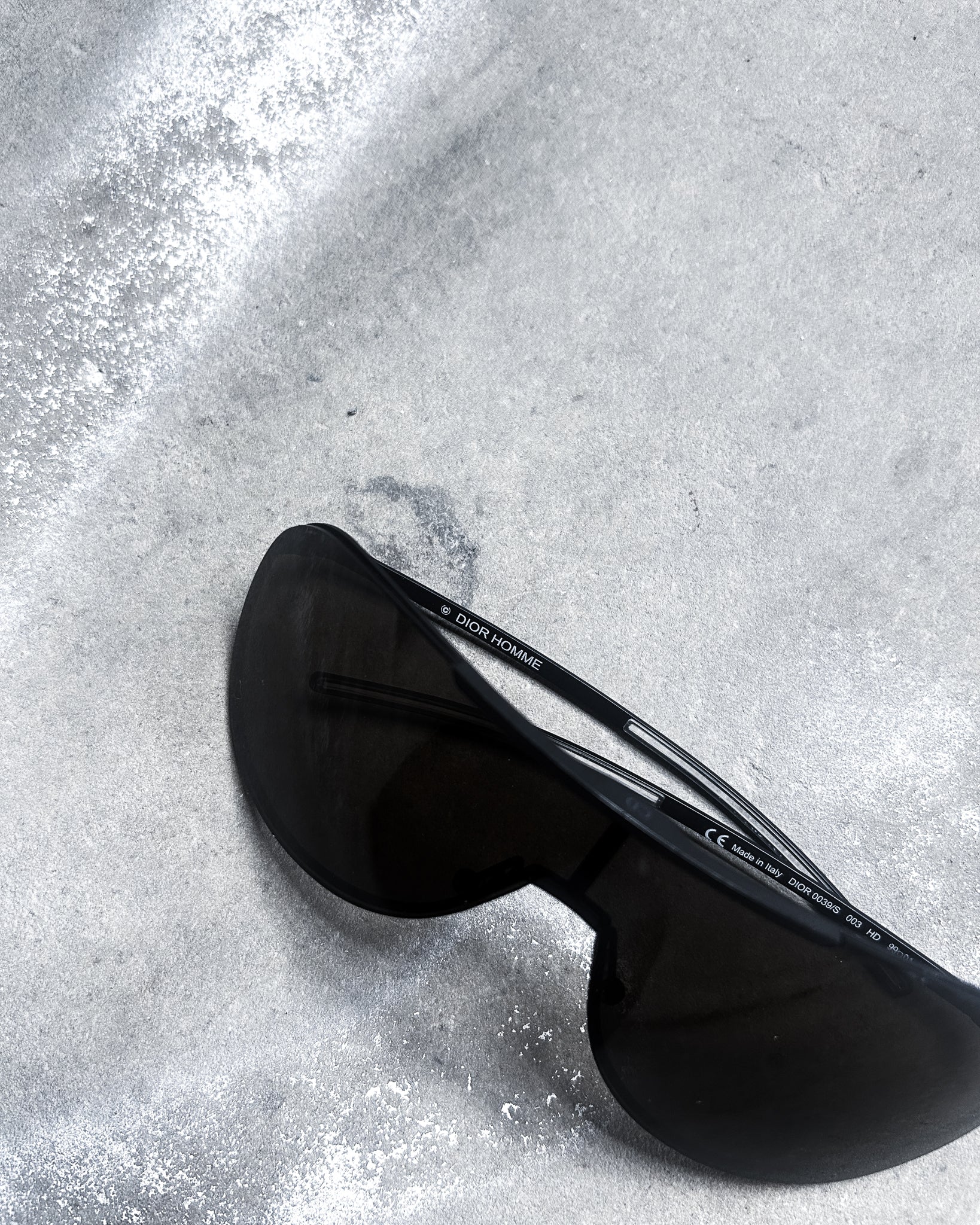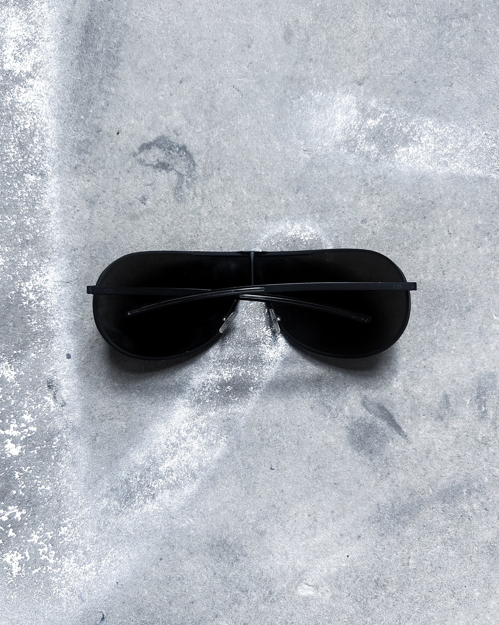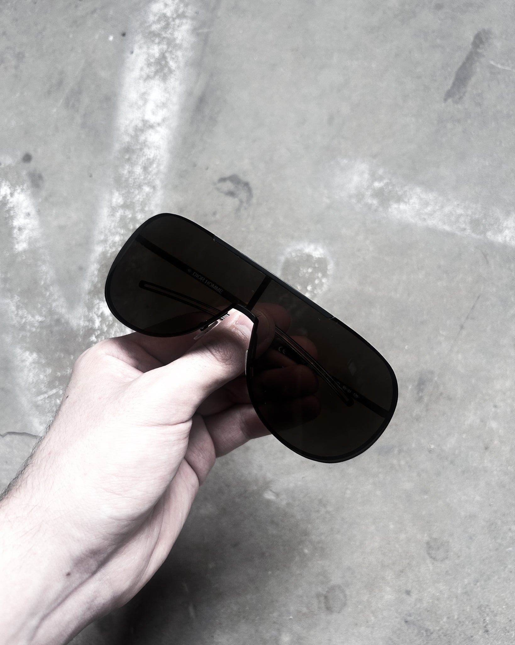 For sale is a pair of Dior Homme shield/mask sunglasses designed by Hedi Slimane. Black/Dark brown lens with gunmetal frame.