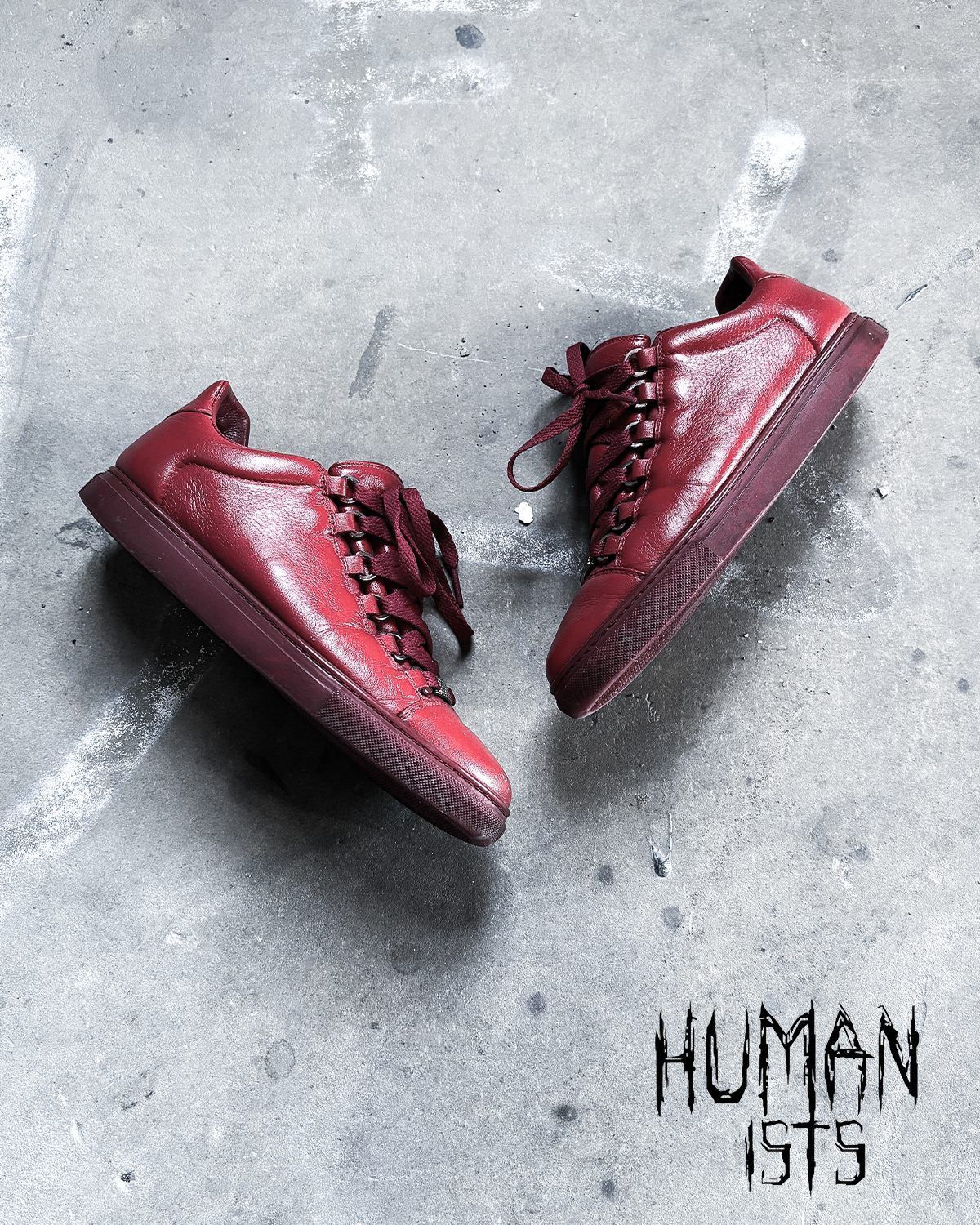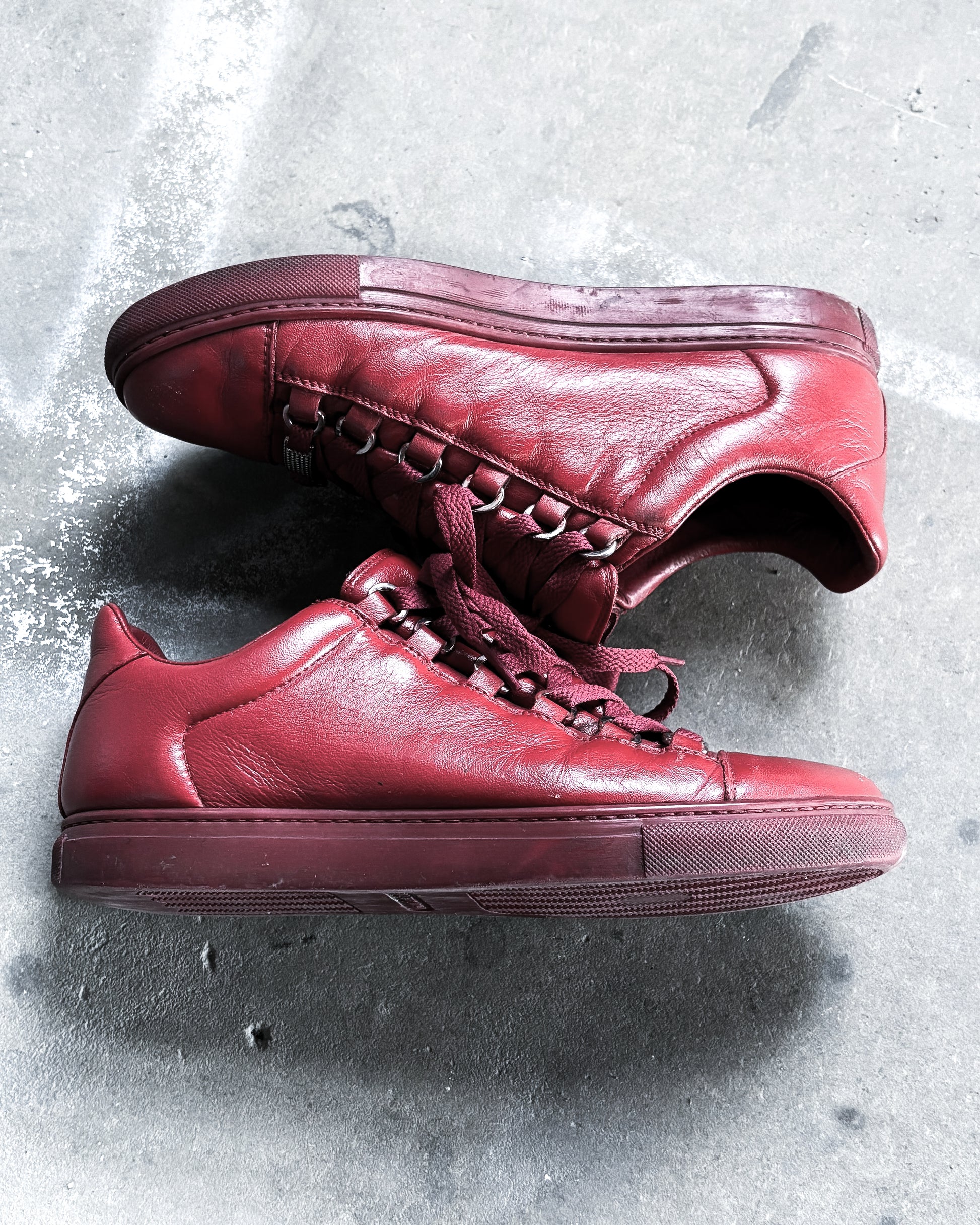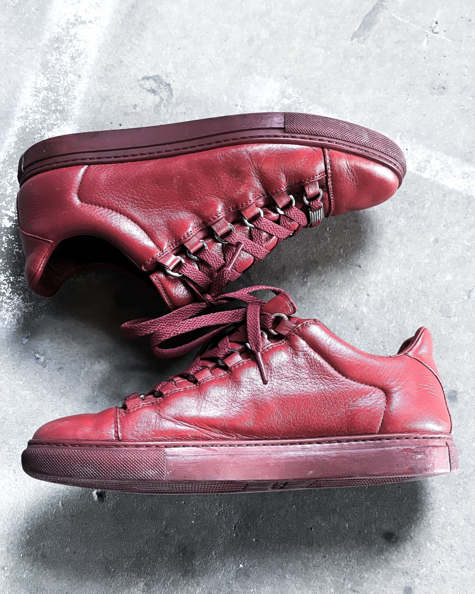 For sale is a pair of Balenciaga low top arenas in red calf leather.