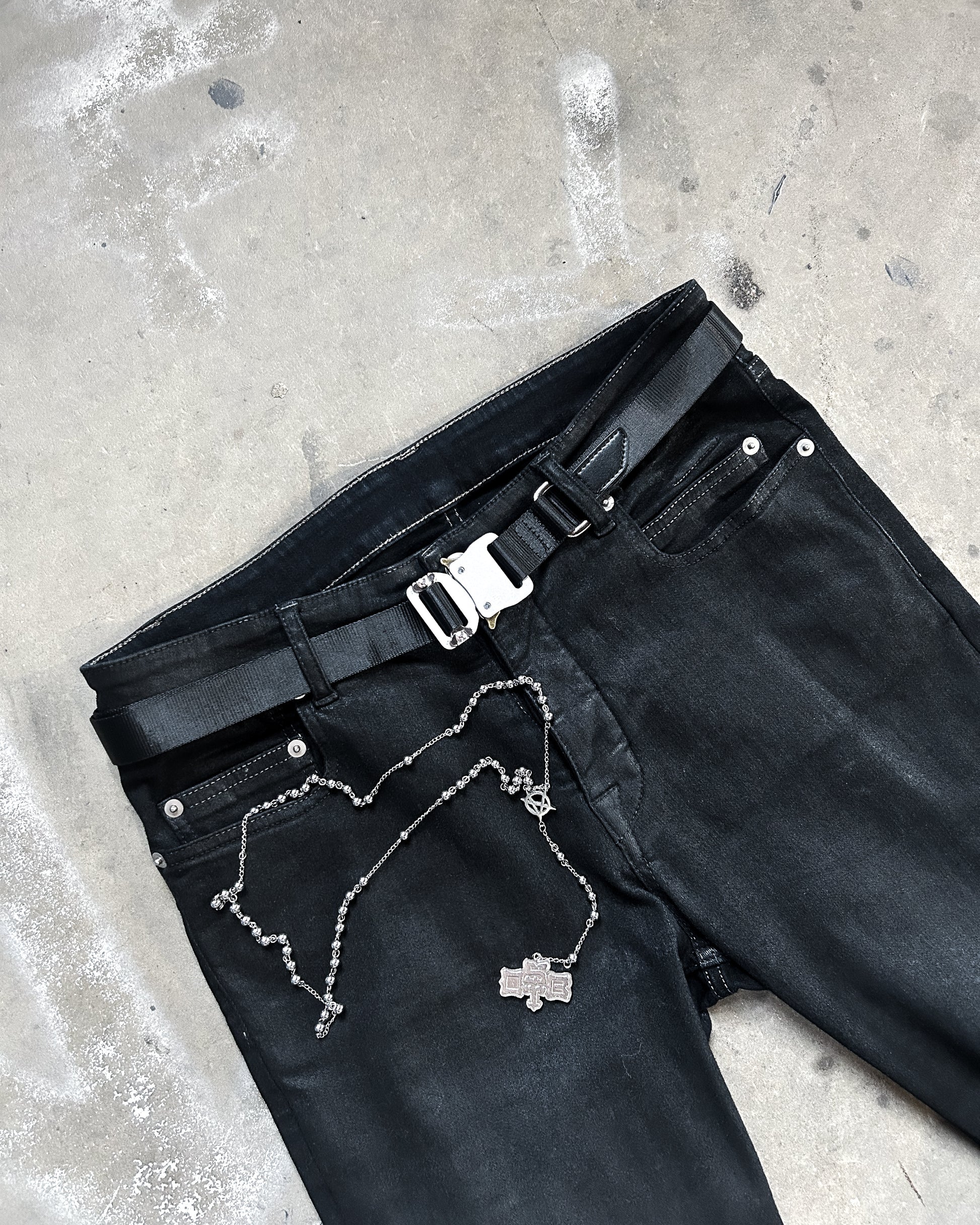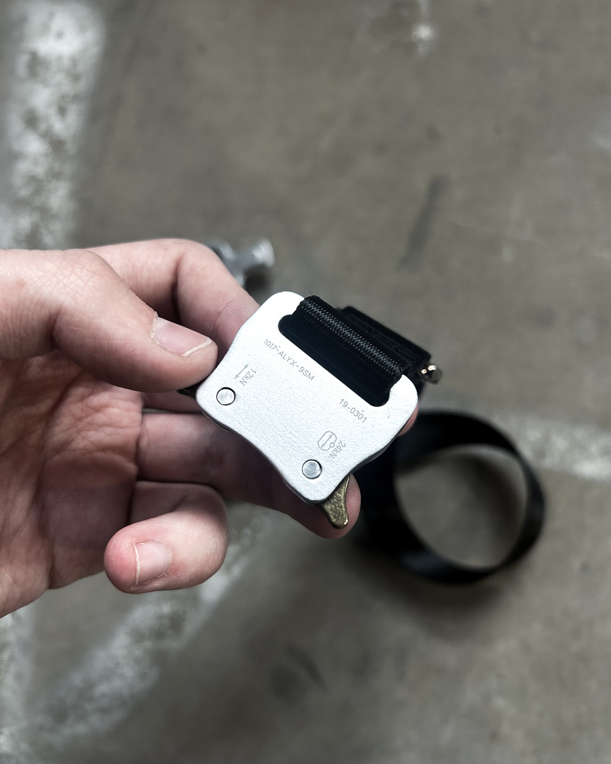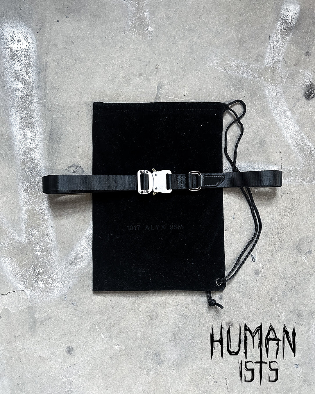 Classic Alyx rollercoaster buckle belt in black and silver.