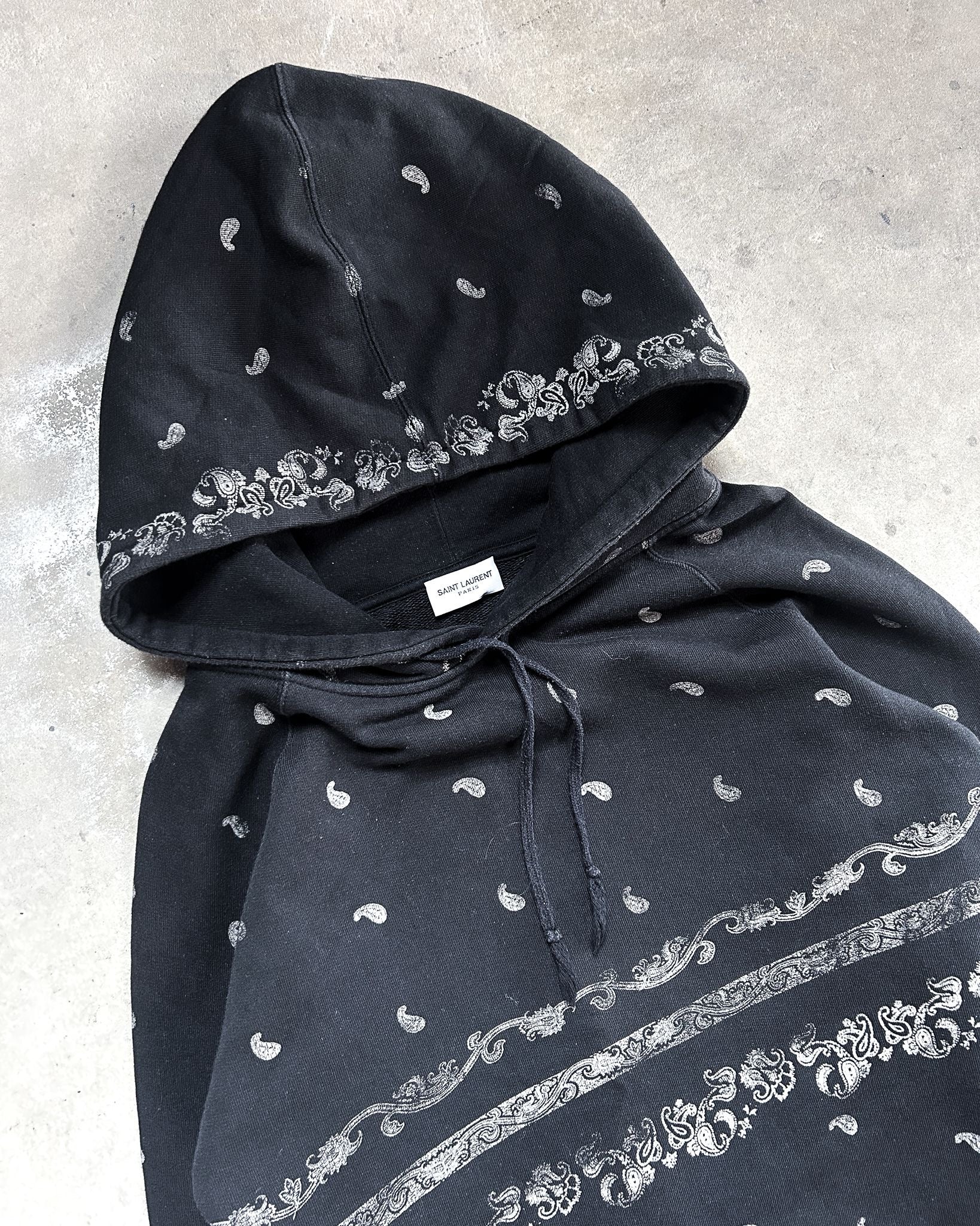 Black paisley patterned hoodie by Hedi Slimane in 2016.