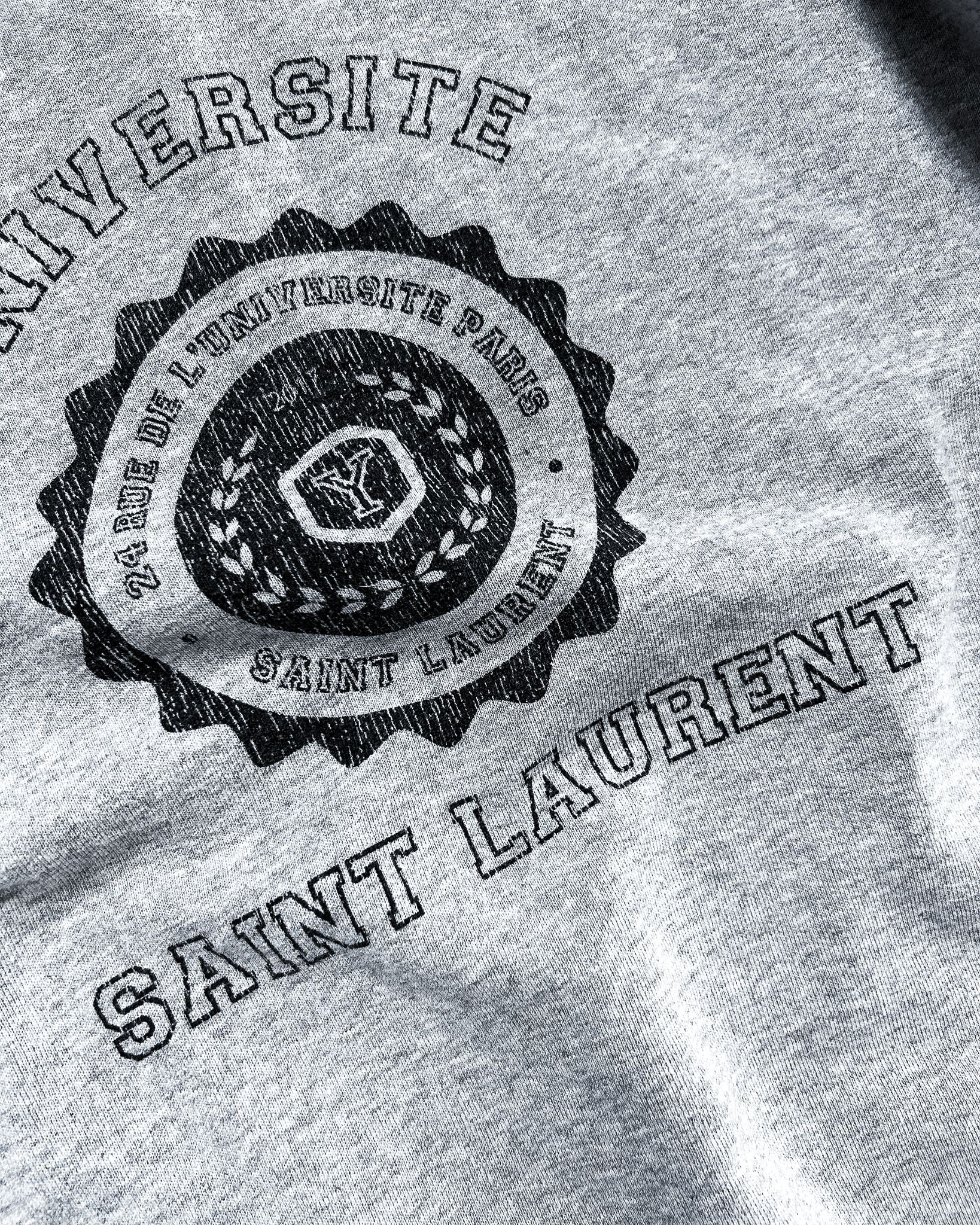 Crazy clean piece from Hedi Slimane era Saint Laurent. The ‘Universite’ logo with circular crest.