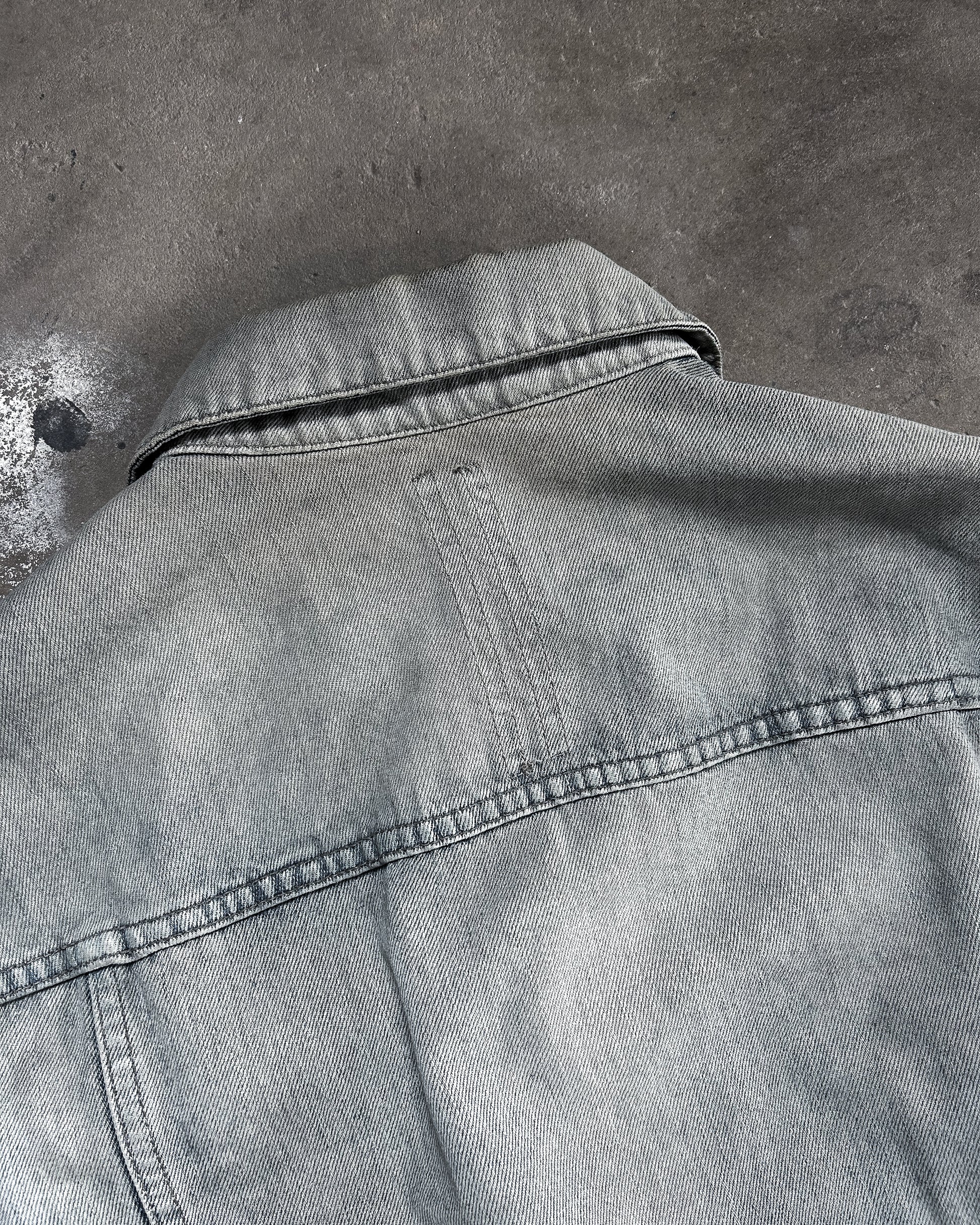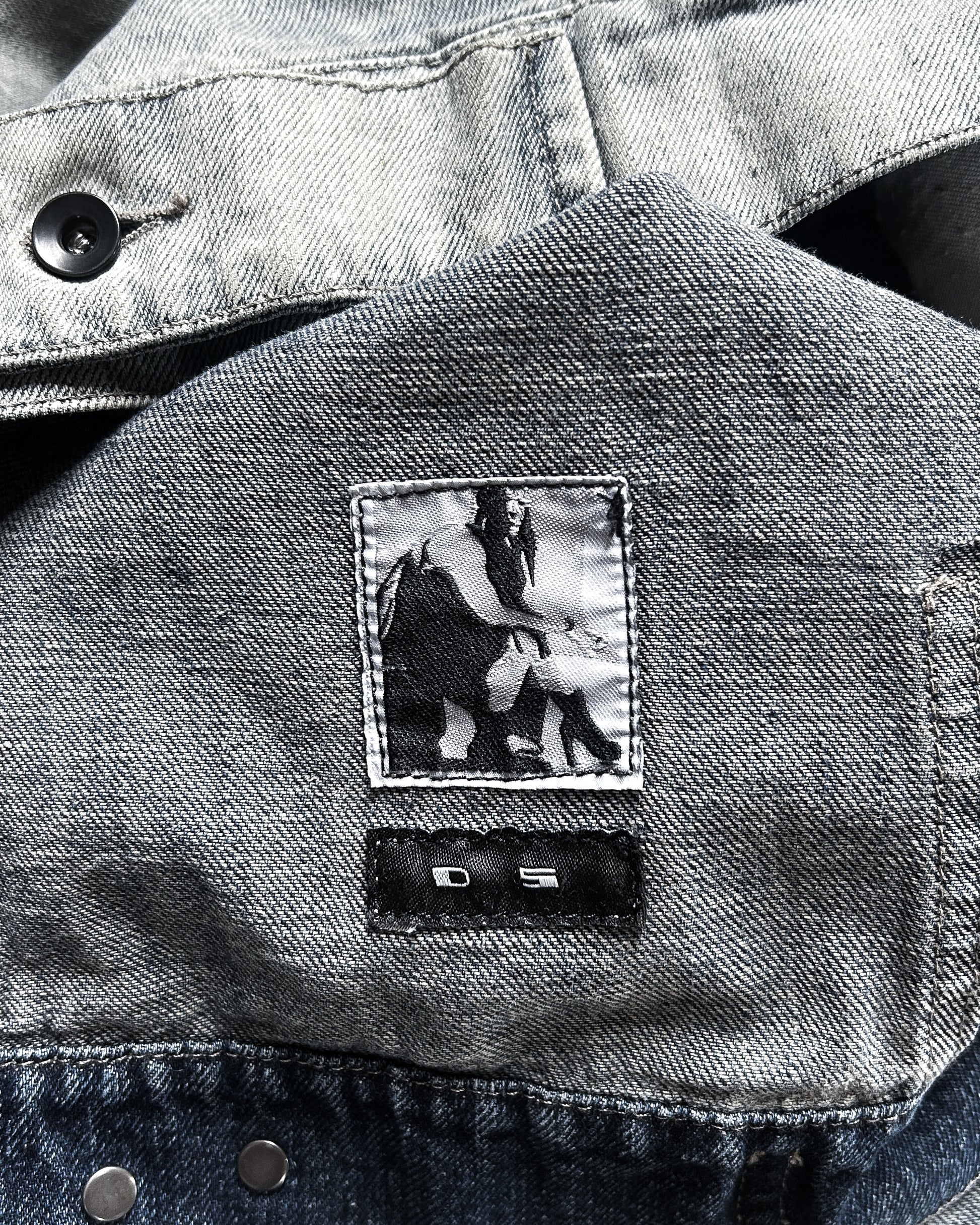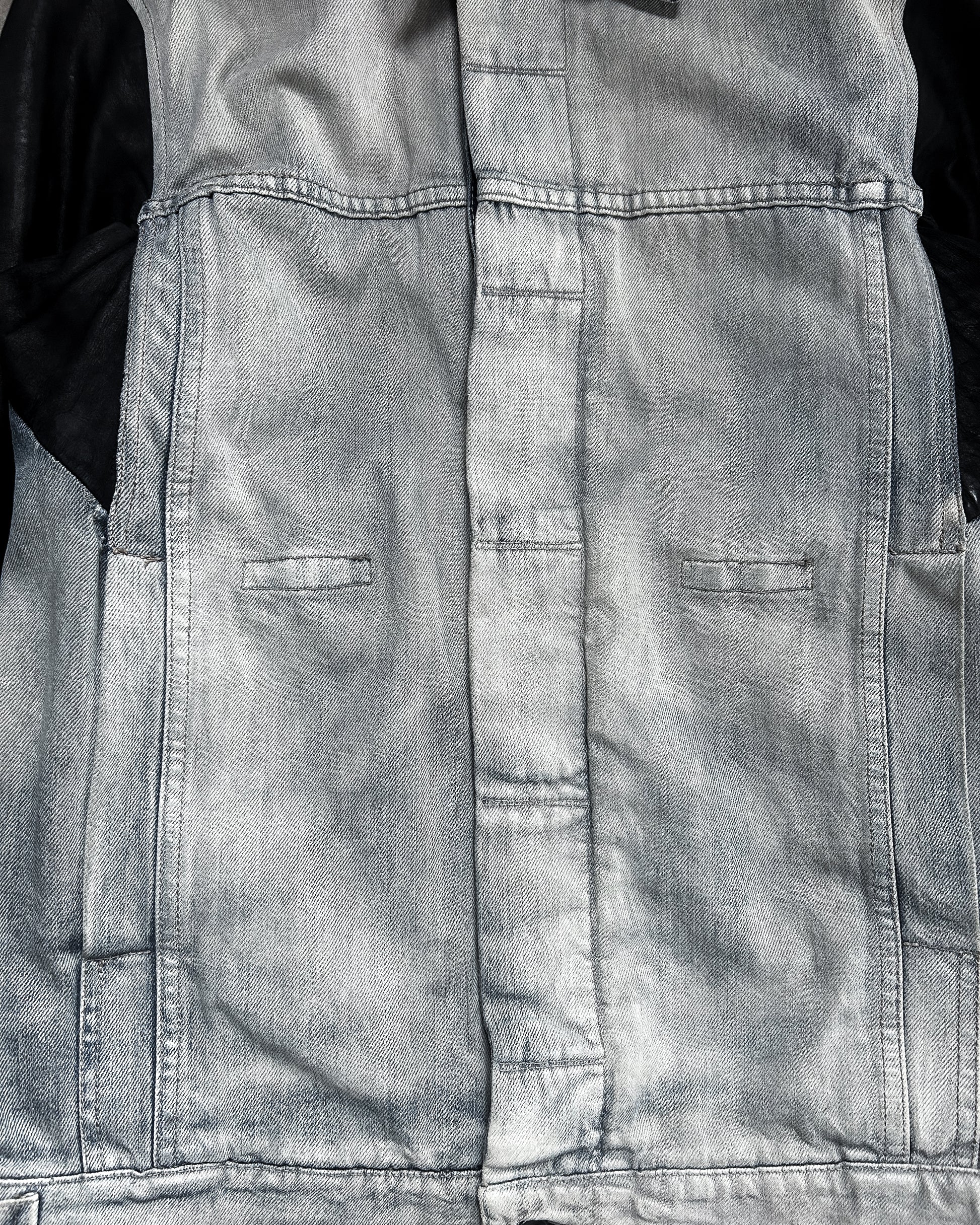 For sale is a Rick Owens Spring Summer 2012 ‘Naska’ worker jacket featuring beautiful calfskin sleeves and a mineral wash body. Great rick denim jacket.
