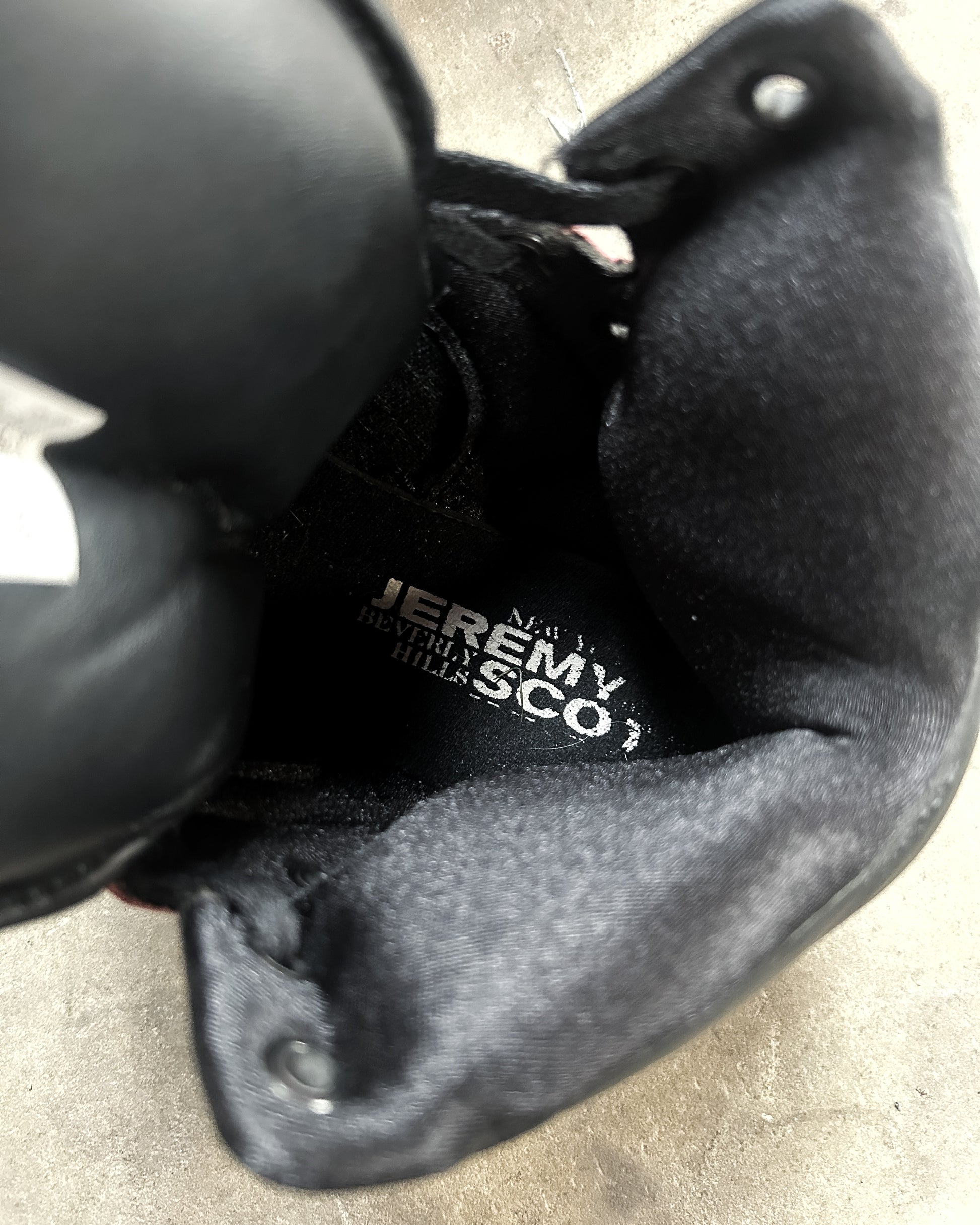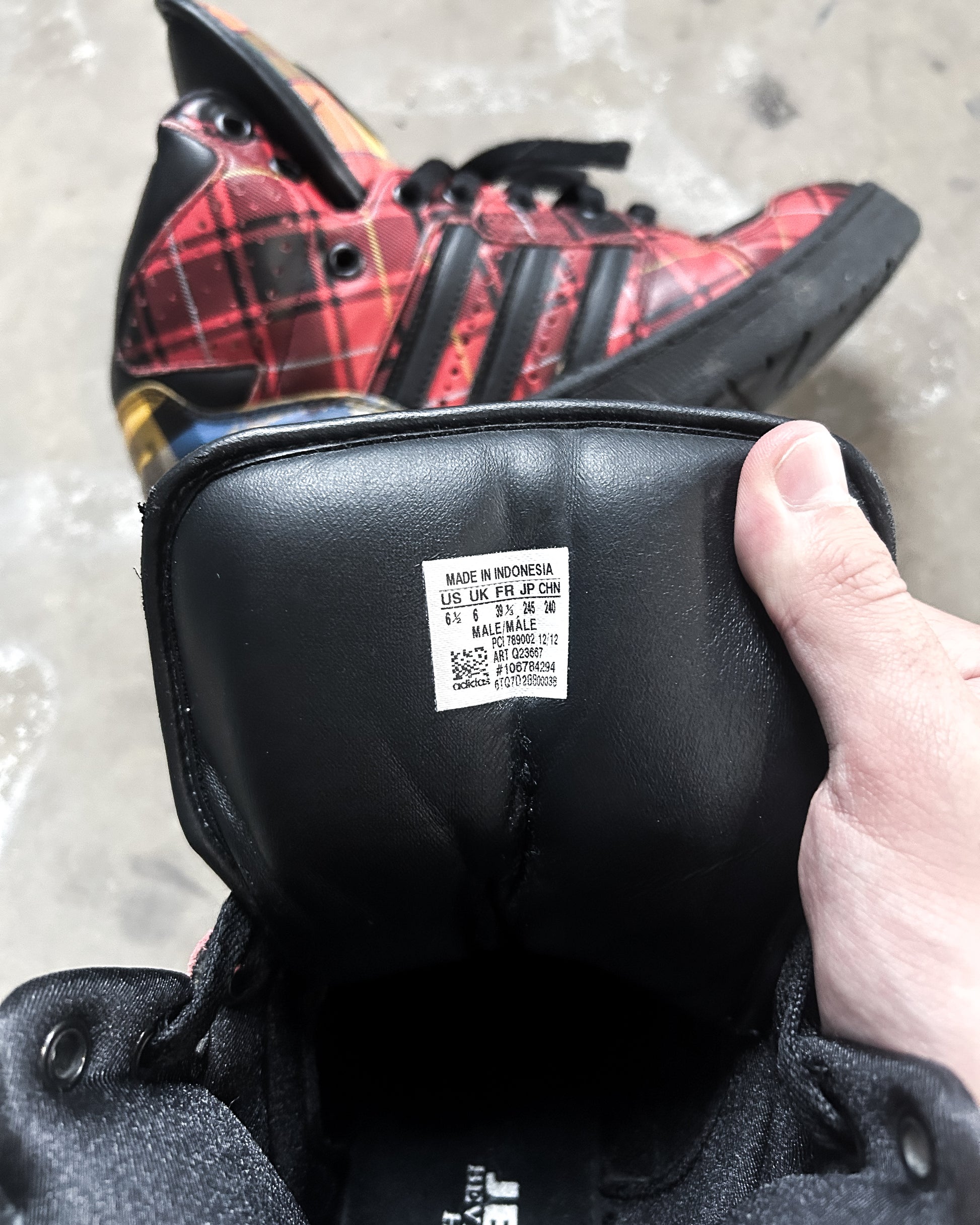 For sale is a pair of Jeremy Scott x Adidas collaboration sneakers from Spring Summer 2013. Features an exaggerated tongue and tartan pattern throughout.