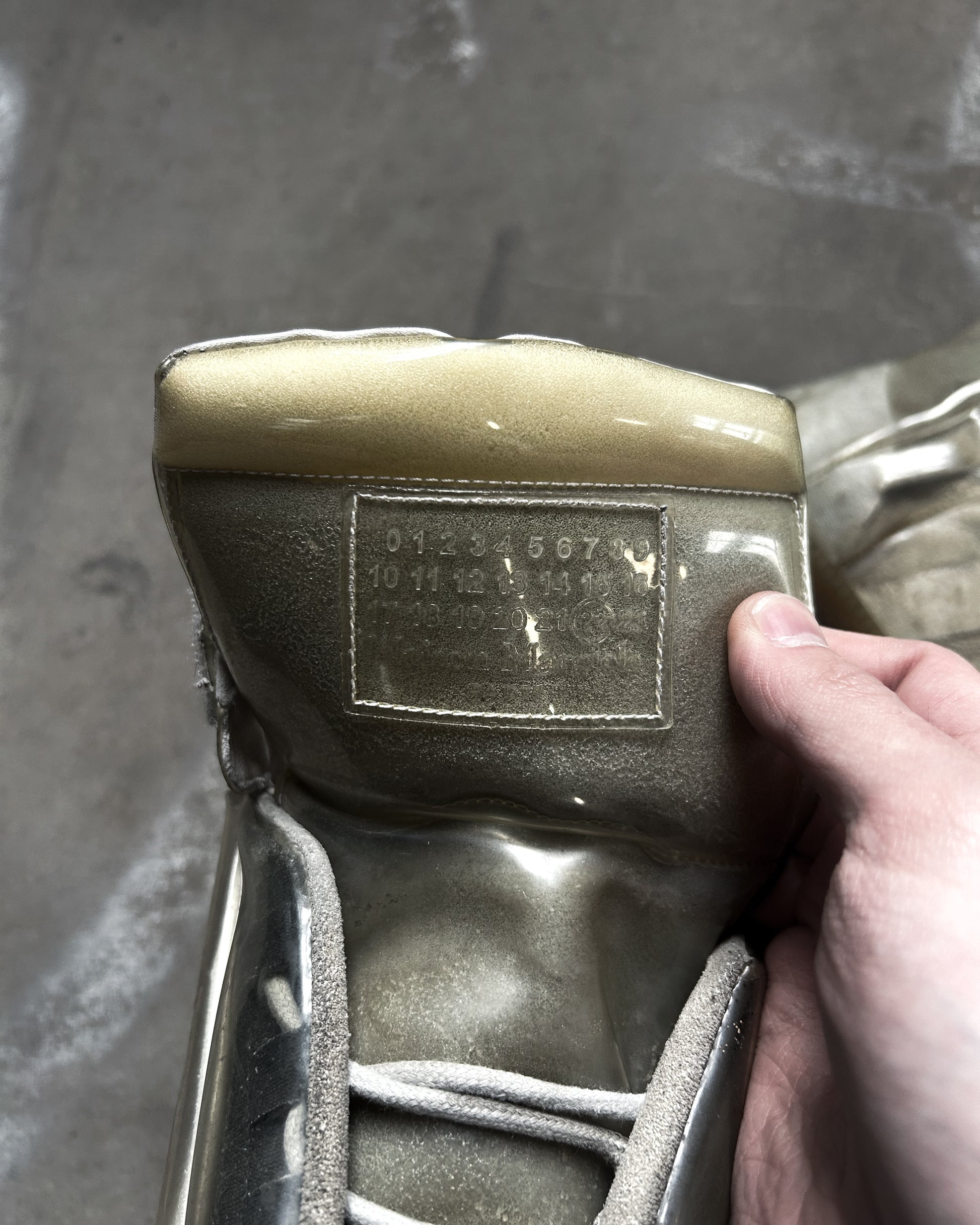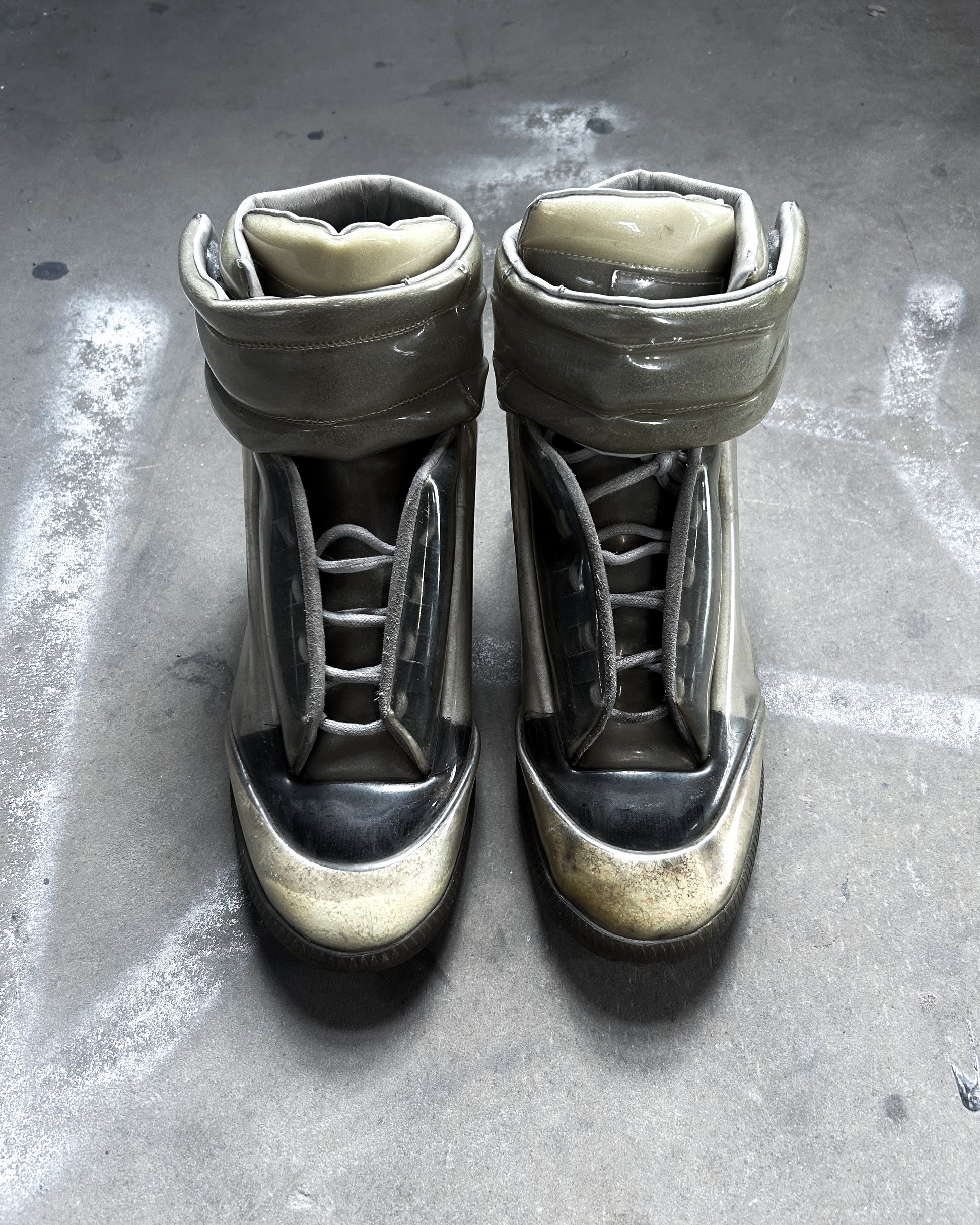 For sale is a pair of Maison Margiela Spring Summer 2016 future high tops in a unique PVC colourway with transparent layers and yellow/brown underneath. Super rare colourway.