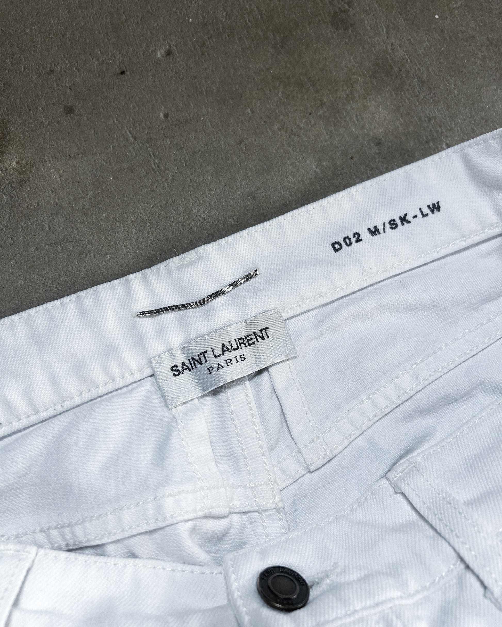 For sale is a pair of Saint Laurent Spring Summer 2016 DO2 white denim from the “Surf Sound” collection. Heavy white denim with blowouts in both knees.