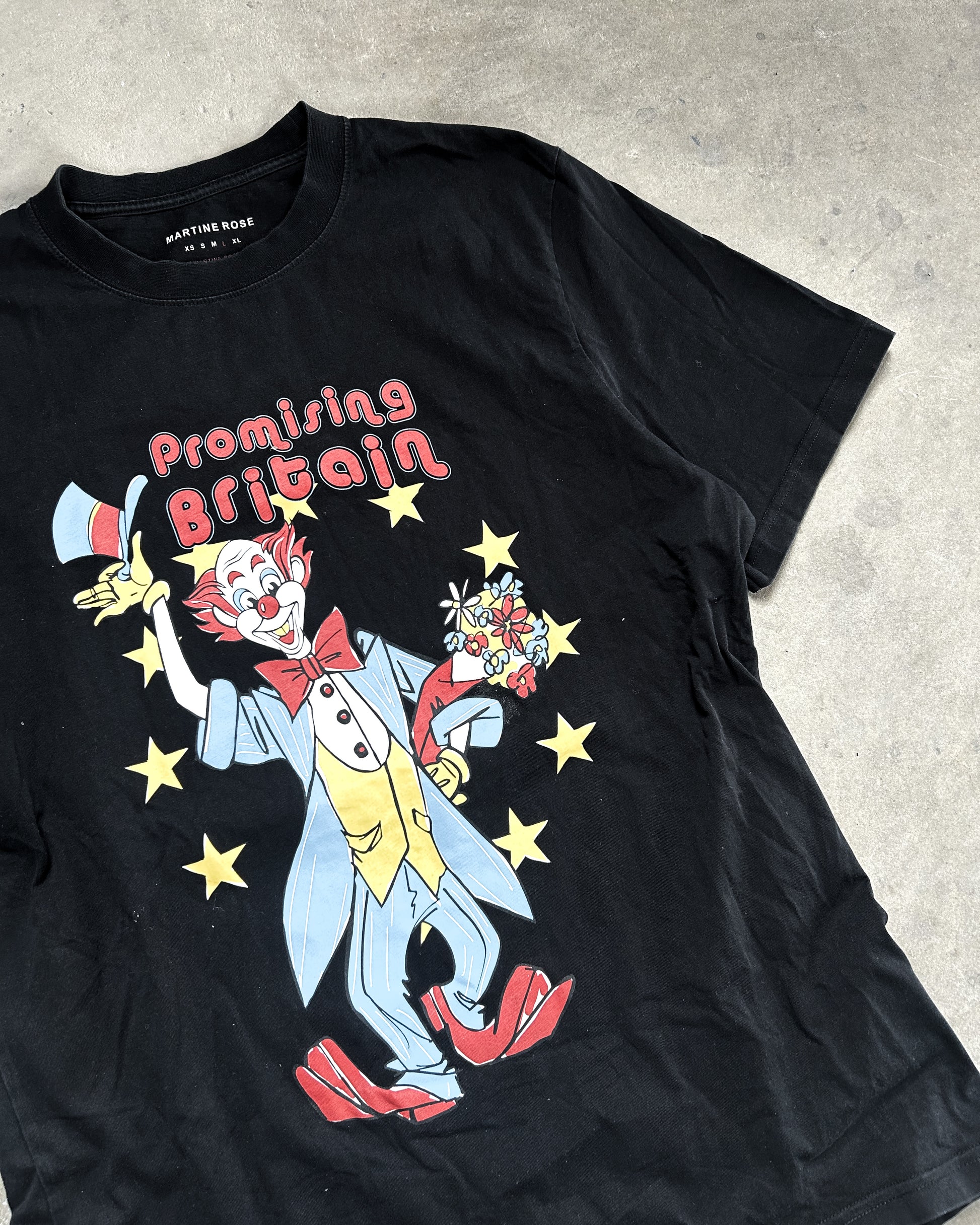 For sale is a runway Martine Rose Spring Summer 2020 ‘Promising Britain’ t-shirt from the runway. The 2020 season was very impactful from Martine due to the uncertainty around the UK government at the time. Very iconic piece for a low price.