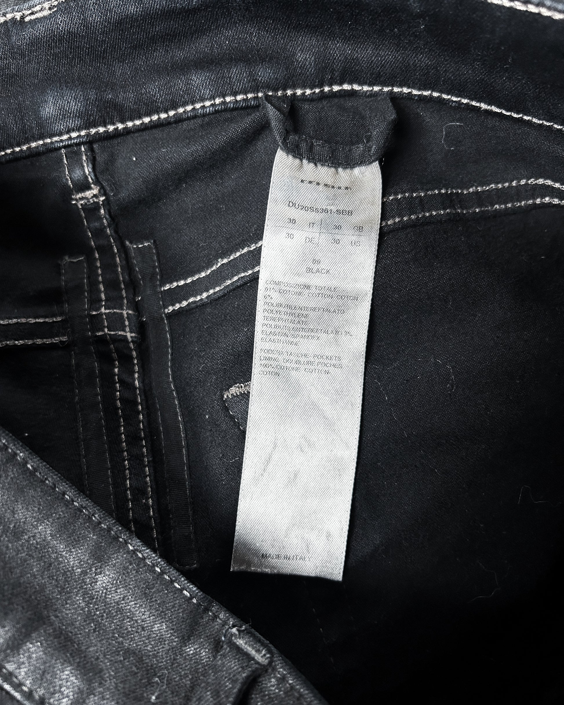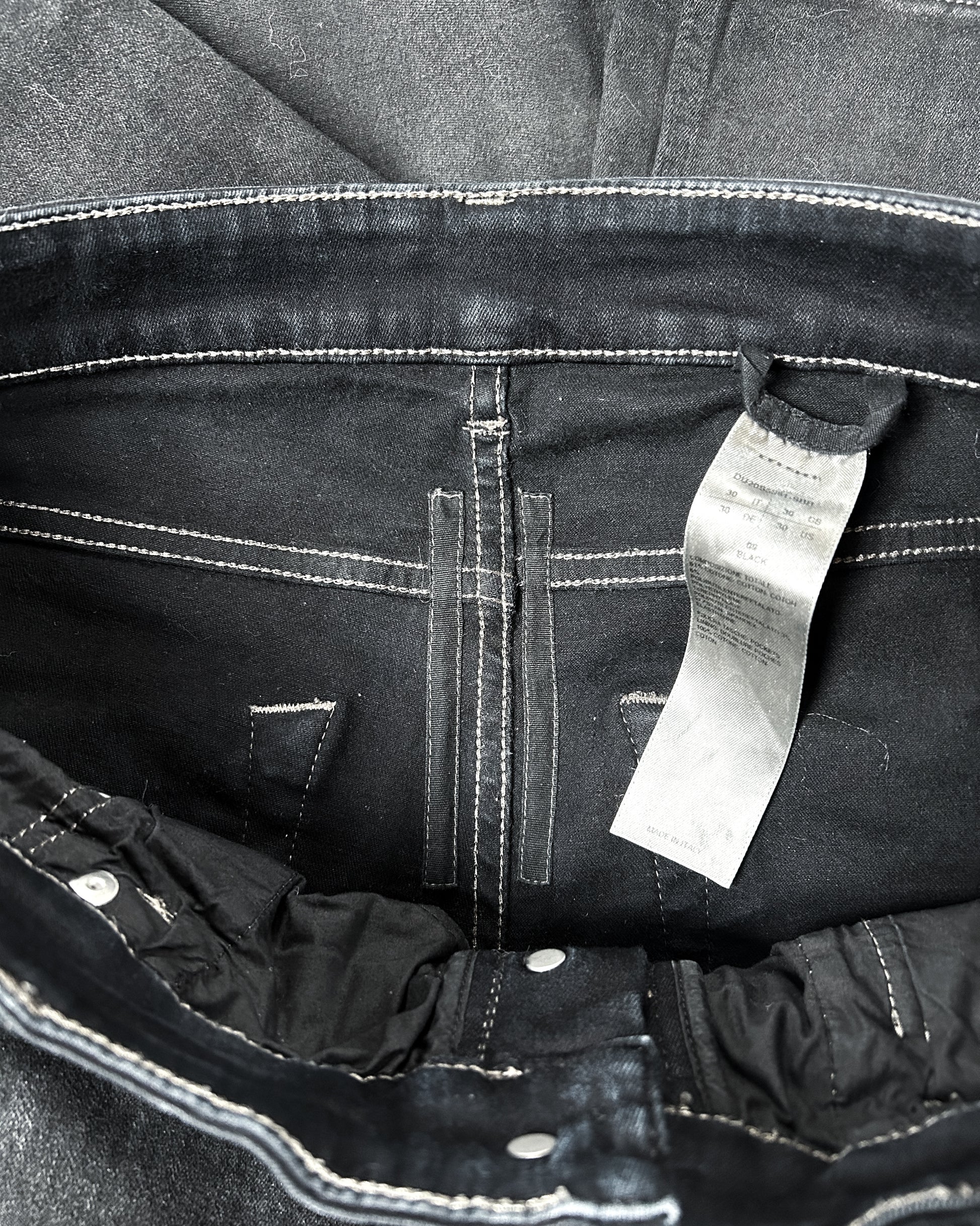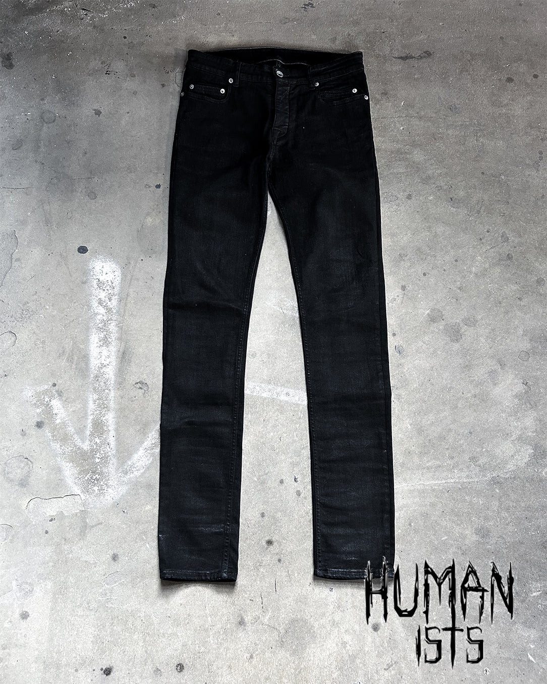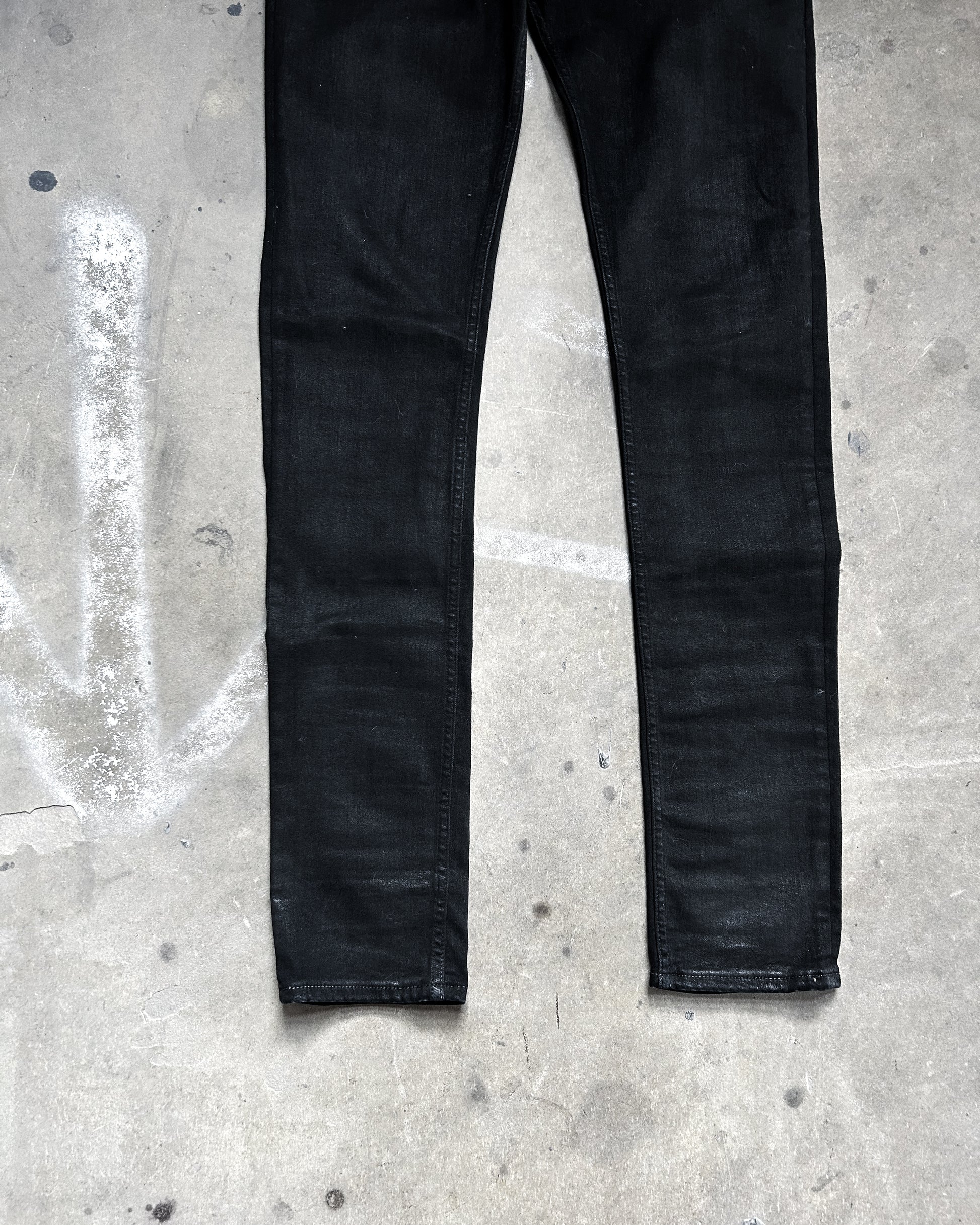 For sale is a pair of Rick Owens tyrone cut denim in stretch black wax denim. Coming from the Spring Summer 2020 show so all of the wax is still intact and feels great. Long skinny fit for stacking up.