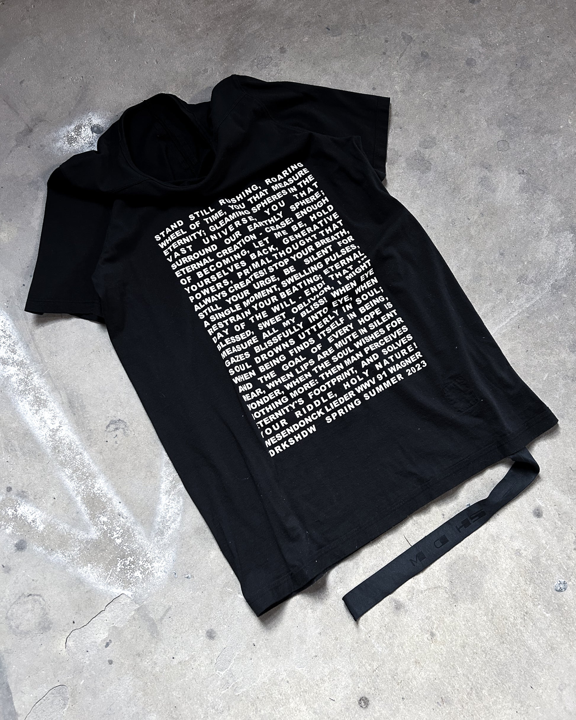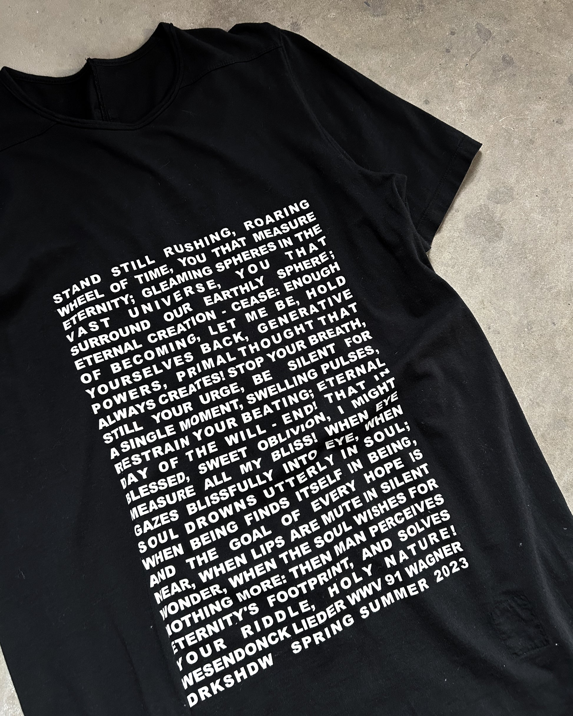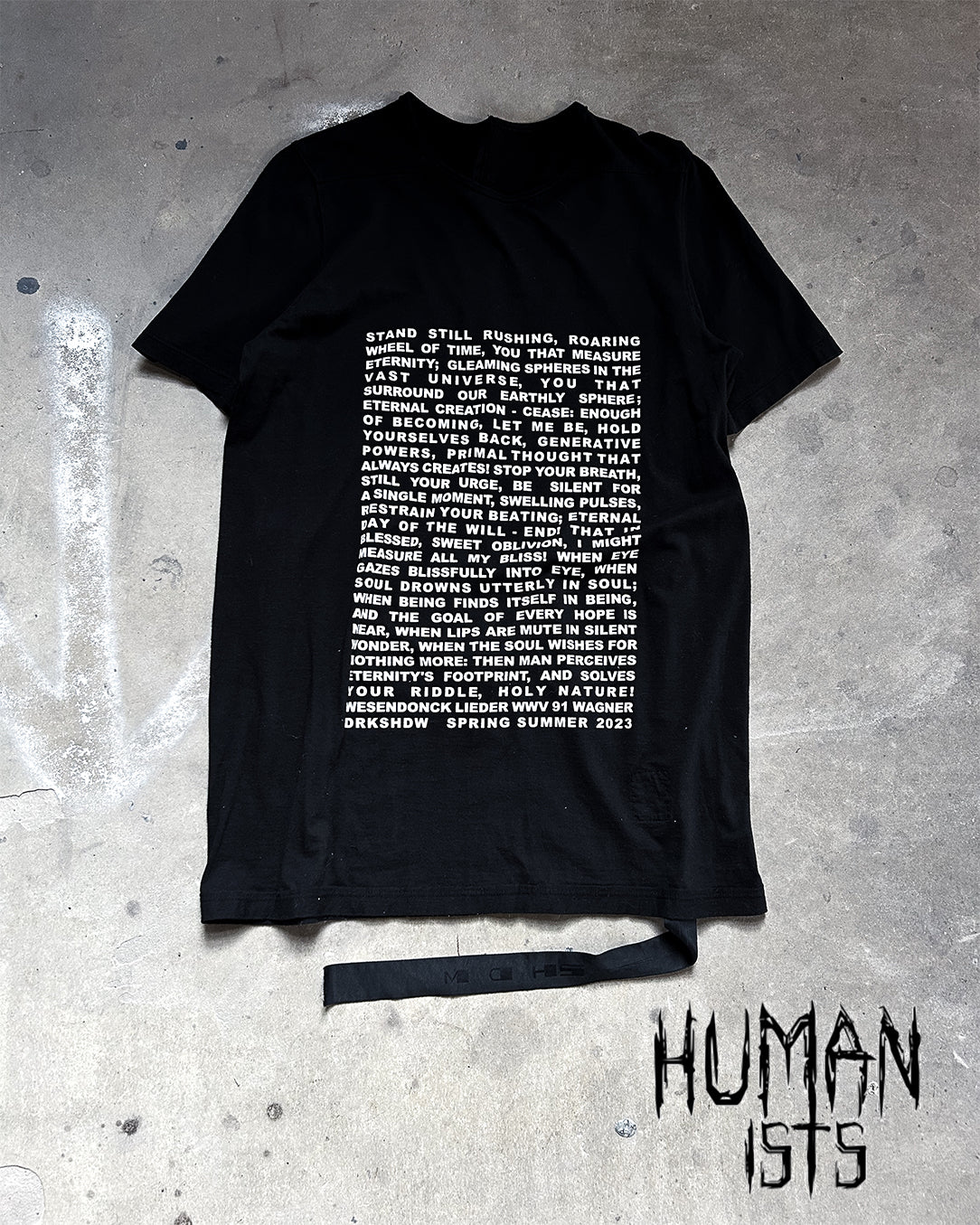 For sale is a Spring Summer 2023 Rick Owens t-shirt from the ‘Edfu’ collection. Features a white quote across the from with a drkshdw hangtag.