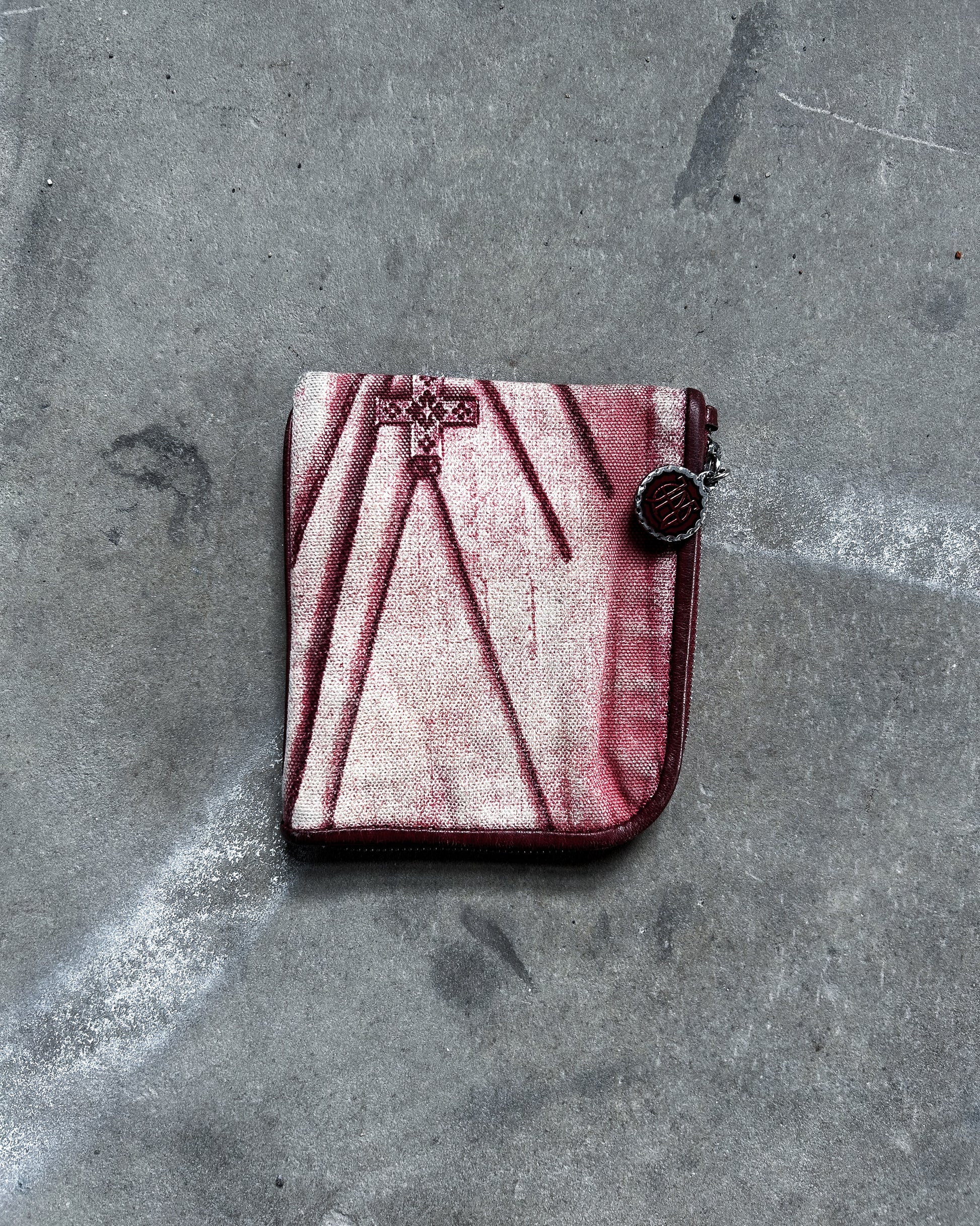 For sale is a vintage Jean Paul Gaultier money pouch featuring a cross necklace design in red and white. Sick piece with JPG branded zippers and interior.